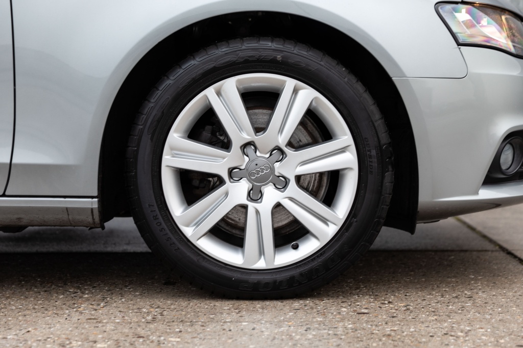 Voor wie ondanks bovengenoemde feiten nog er niet van overtuigd dat de lage kilometerstand juist is is er nog een aanvullende onderbouwing zoekt; de Audi staat nog op de originele Dunlop banden waarmee hij af-fabriek geleverd is in 2008! De banden zijn niet uitgedroogd en nog niet versleten wat bewijst dat de auto altijd verwarmd binnen heeft gestaan en er rustig mee gereden is. Wordt natuurlijk voor aflevering voorzien van 4 nieuwe banden naar keuze.
